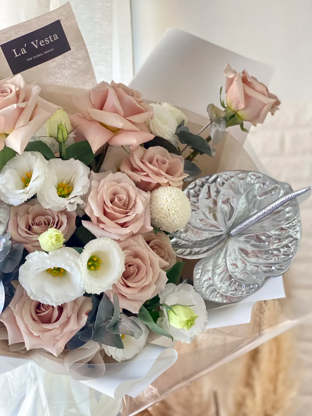 - Medium large come with 9 stalk of roses, eucalyptus, pingpong, etc.